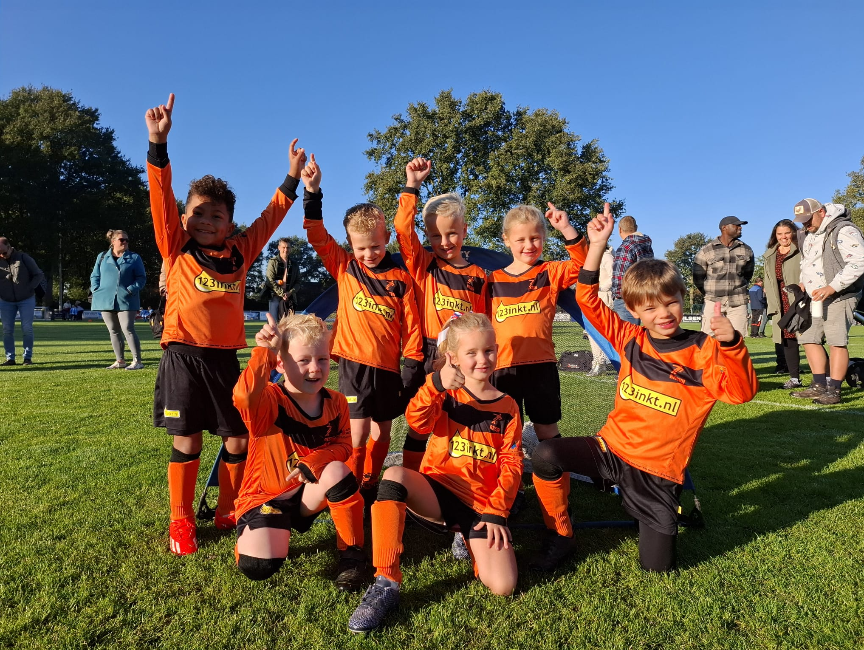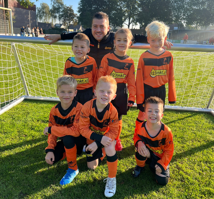 Team 3 bestond deze keer uit Jens, Seth, Joos, Raff, Sam en Nomé en speelde tegen Heythuysen, Horn, ‘ hele grote kindjes’ en RKVB. De eerste wedstrijd was meteen een hele lastige. RKSVN speelde tegen een hele sterke tegenstander. Ondanks de tegendoelpunten bleef het hele team goed samenwerken en werd er ook nog bijna gescoord. De tweede wedstrijd begon RKSVN heel goed. Door goed samen te spelen werden verschillende doelpunten gemaakt. Verdedigend werden weinig kansen weggegeven en zo werd verdiend gewonnen. Na de ranjapauze stond er geen wedstrijd op het programma vanwege het oneven aantal teams. Toch waren er een aantal ‘hele grote kindjes’ die het team uitdaagde een wedstrijd te spelen. (zie foto) De wedstrijd werd vakkundig gewonnen door de jongste jeugd en zo werden de ‘hele grote kindjes’ weer met beide benen op de grond gezet. De laatste wedstrijd was erg spannend. Door beide teams werd twee keer gescoord tot de allerlaatste seconde. Jens schoot de bal in het doel, maar was het binnen de tijd? Na het bestuderen van de VAR beelden werd het doelpunt geldig bevonden en zo werd met winst afgesloten.